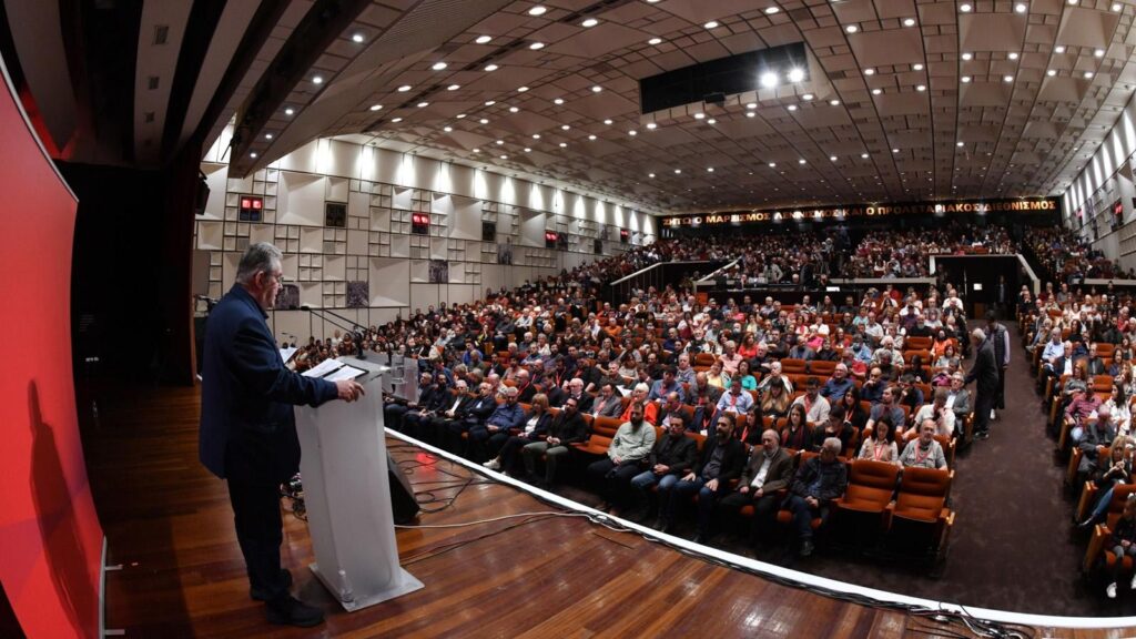 Dieses Motto bildete den inhaltlichen Rahmen für die zwei Teile der Veranstaltung: Am Samstagabend fand eine große Versammlung im Saal des Sitzes des Zentralkomitees der KKE statt, auf der der Generalsekretär des ZK der KKE, Dimitris Koutsoumbas, die zentrale Rede hielt, gefolgt von einem beeindruckenden Konzert mit revolutionären Liedern aus Griechenland, Deutschland, Spanien, der Sowjetunion, den USA und weiteren Ländern.